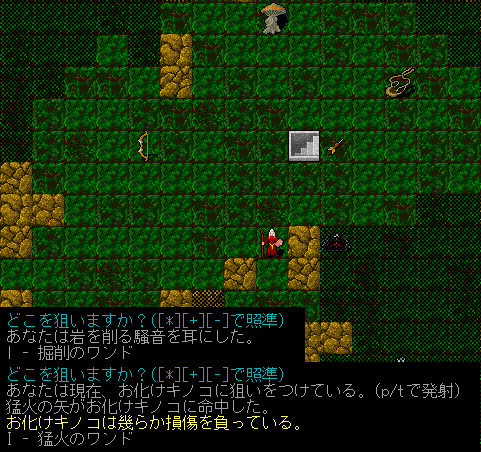 キノコ(動かない)へワンドを撃ちます。変化のワンドを撃つと怖いから遠くから使いますね。全部鑑定をできたら嬉しいんだけどなあ。