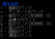 銀のワンドは序盤から持っていたワンドです。こいつは治療のワンドの可能性が高いと覚えておきます。鉛のワンドは候補が絞れないな。