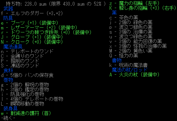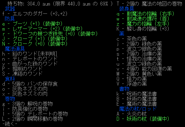 これは・・・ランダムテレポートの変異がついているじゃねーか!!あれか?ゾットの罠を踏んだ時に変異をしてしまったのか?もしかしたら『浮遊+飛行制御の護符』でゾットの罠を回避できたのかもしれない。飛行をすればスピアの罠は回避できるし(実験をした)!