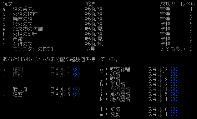 常時浮遊するくらい慎重にプレイをした方が良かったのかな。妖術のスキルに経験値を吸われて地の魔術スキルが上昇しないんだけど(泣)。