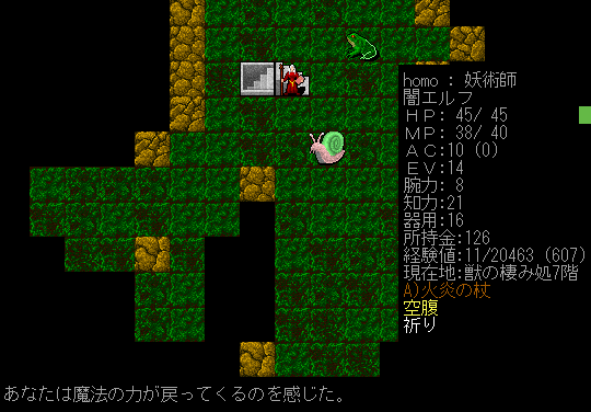 サクサクと地下7階に降りてきました。スキル経験値が妖術に吸われていく。だが他のスキルに振っても意味がなくなってきた。呪術の加速を唱えられるまでは上げた方がいいのかな。