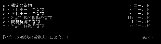 瞬間移動の巻物は買いだめをしたい。しかし、お金が足らないのです。鑑定の巻物を買うだけで良いだろう。薬や巻物の鑑定にも使いますからね。