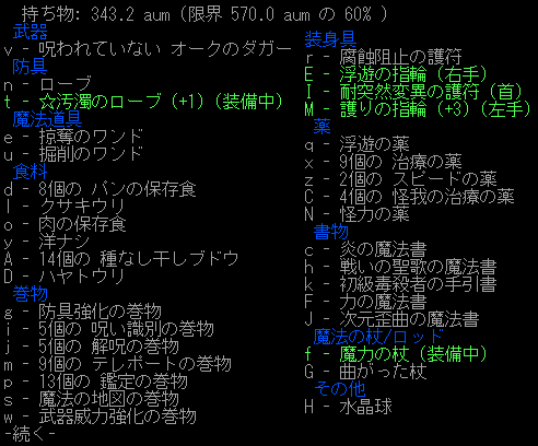 まずい。階段の上り下りを舐めていた。もう敵はいないだろうと階段を下りたら敵に囲まれてしまった(しかも毒)。もう瞬間移動の巻物を使うしかない。テレポートをしても生き残れるかは不明。