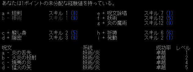 もう炎の魔術スキルは抑制をしていいね。ファイアーボールの呪文は覚えた方がいいの?敵がいっぱい出てきた時に有効なんだろうか。
