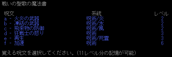 飛来物の防御と加速の魔法を学習できるようです。これは素晴らしい魔法書だ!祈祷のスキルを6にしたら呪術の魔術スキルを上げていこう。とりあえずは祈祷を優先。