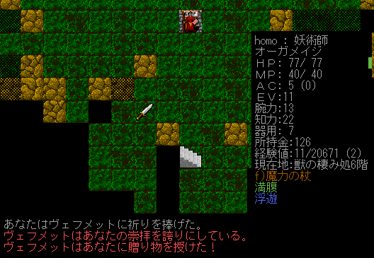 悪食の護符を拾ってしまった。闇エルフの時に出ろよ!まあ仕方ない(泣)。祭壇に捧げてしまおうか(ヴェフメット信仰は無理)。