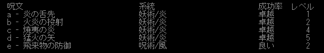 現在の呪文とスキル