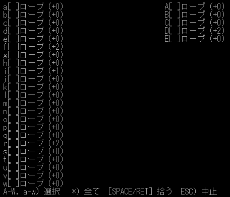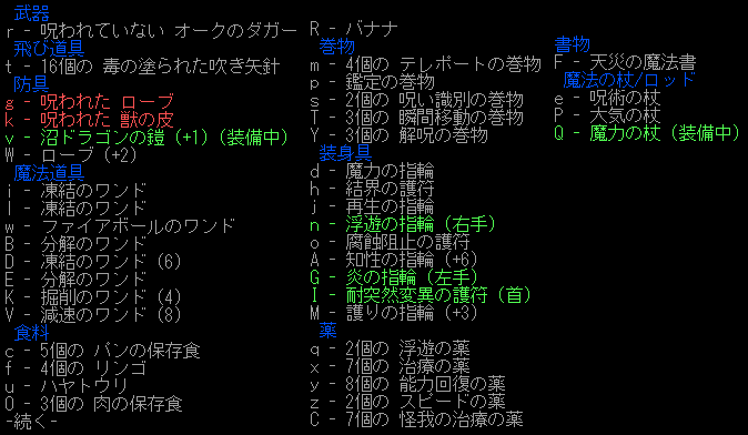 ナーガ達の落としたローブを全て着脱しました。結果は上の画像。耐魔法のローブすら無いってのは悲しい。いずれサクッと倒されちゃうんだろうなあ。