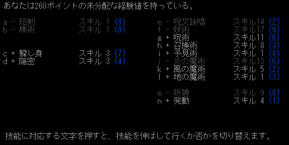 浅い階層でも予想以上にスキル経験値がたまる。スキルレベルを10にするくらいなら攻略済みのダンジョンでも可能みたいです。呪文詠唱のスキルを抑制しなければ無理だけどね。