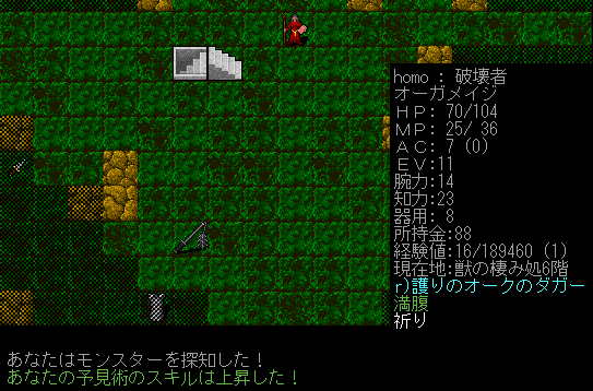 Dungeon Crawlのプレイ日記を始めます。オーガメイジ炎の精霊使いをプレイ中です。召喚スキルをあげて『おぞましきものの召喚』を唱えよう。宝物庫のアイテムを漁るつもりです。毒耐性があれば沼に行けるのを知らなかった。