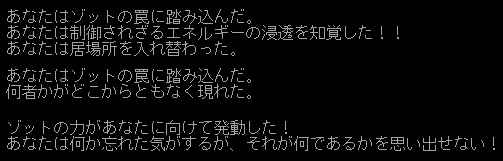 気づいたら体が発光をしていた。なぜだ!?とログを見たらゾットの罠を踏んでいたあ!浮遊状態だから良かった(?)ものの、発光はまずいでしょう。