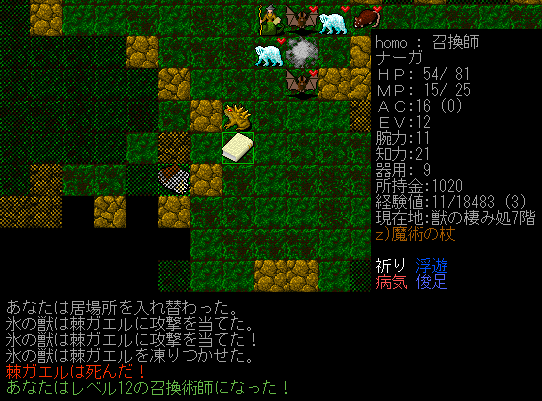 ようやくレベルが12になりました。炎の精霊使いの時に比べれば緩やかな上昇なんだろうな。召換獣に任せるだけの楽な進攻だし仕方ないね。食料が貯まってしまうくらい余裕だし。
