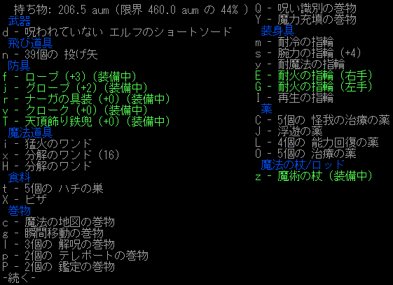 5階は大したアイテムがなかった。6階に降り進みます。うーむ、見たところ強敵はいないようですな。常時浮遊+俊足をしながら倒します。