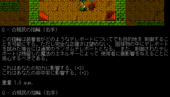 アーティストの指輪を鑑定した。テレポートを制御する指輪みたいね。この指輪を使いこなせるほどゲームに習熟していないよ。