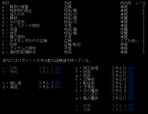 大気の杖を装備しながら猛火の矢を『卓越』で撃てるようになりました。次は呪術と風の妖術スキルを伸ばします。目標は大気の杖無しで飛来物の阻止『卓越』です。