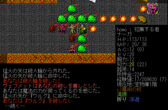 大して妖術スキルは高くないのに猛火の矢が強すぎますよ。魔術の杖で威力がブーストされてるからだね。耐性の関係でいずれ魔術の杖は外すことになります。