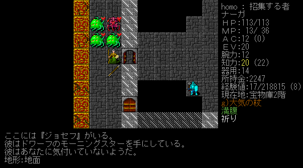『ジョゼフ』と遭遇をする。1階で同じ名前のユニークを倒したはずだ。何度も出てくる名前なのかな。静寂を唱えて倒しました。