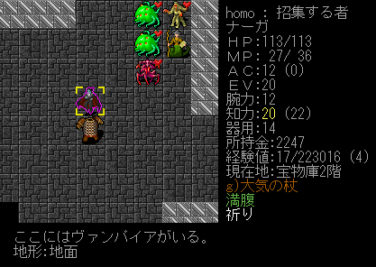ヴァンパイアとは初めて戦いますね。召換の魔法を使うんだっけ?猛火の矢を連打して撃破。常時浮遊が面倒くさくなってサボりだす。