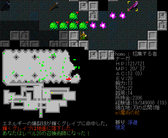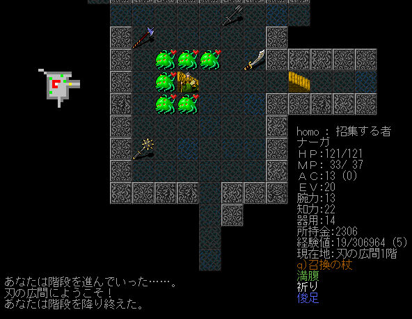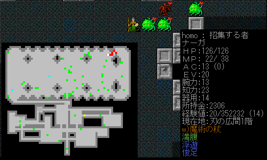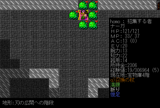 Dungeon Crawlのプレイ日記を始めます。ナーガ召換術師をプレイ中です。宝物庫を7階まで攻略しました。次は刃の間に向かいます。刃の間は危険なダンジョンだと言われています。だが、経験値を稼ぎに行かないとスキルレベルが足らなくて詰む気がする。