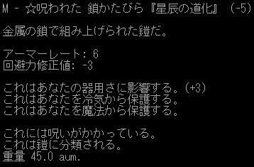 冷気耐性と魔法防御を得られる鎖かたびらだ。こんなのを装備したらドラゴンのブレスで殺されるぞ(なら拾うな!)。