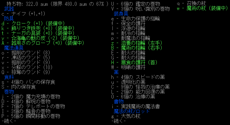 当時の僕「肉を裂く刃物は軽いナイフに変えた。堀削のワンドを使って階段へ移動しやすくしよう。大広間は遠いから食料は多めに持っていこうかな。