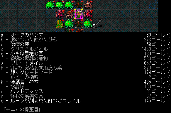 骨董屋を発見しました。突然変異治療の薬が販売されているね。高価すぎるから必要になったら買いに来ようか。2ゴールドで販売されているルビーの指輪が気になります。