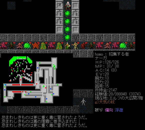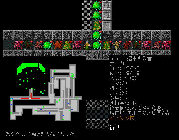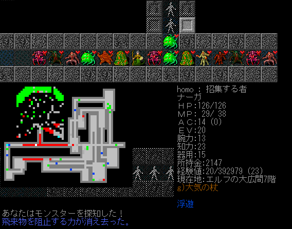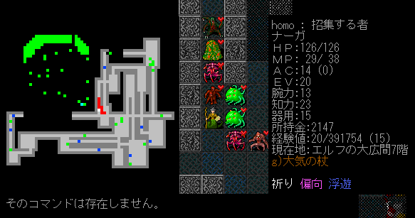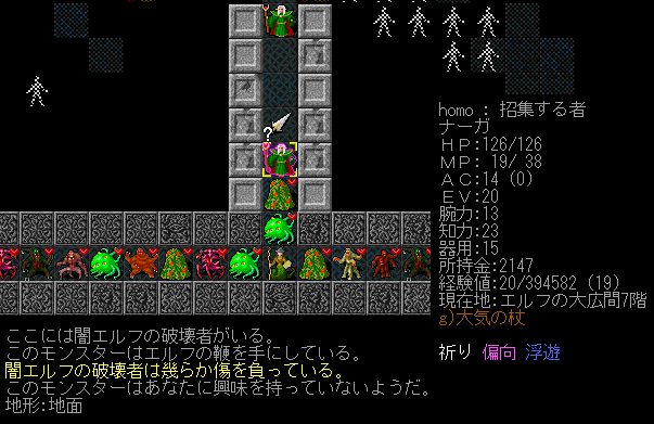 Dungeon Crawlのプレイ日記を始めます。ナーガ召換術師をプレイ中。エルフの大広間7階を攻略しています!罠探知の魔法を使い忘れてテレポートの罠を踏んでしまった。私は運で生きています(泣)。