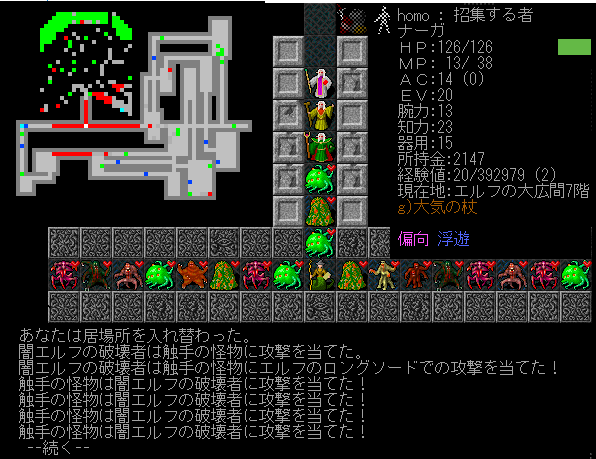 うーむ、モンスター探知により起こされたエルフが触手の怪物に倒されているようです。しばらく足踏みをしながら敵をおびき出すことにする。