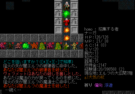 そうだ!アイテム探知を唱えればエルフの本拠地が分かる!魔法の地図の巻物が無くても小部屋のエルフを倒せそうですね。
