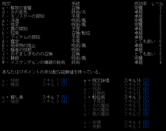 呪文詠唱スキルの上昇を優先しよう。上がれば猛火の矢を記憶できるのです。それまではイスケンデルン(杖ブーストなし)を連打します。