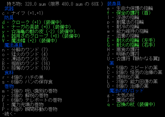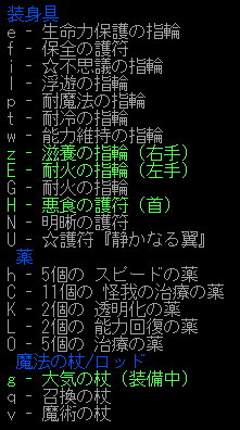 いちおうオレンジの像を警戒して薬を選別したつもり。イスケンデルンが弱いから思ったよりもワンドを消費している。