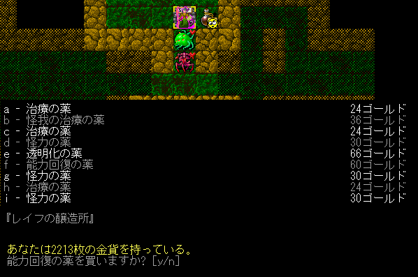 獣の棲み処にて能力回復の薬を購入。おぞマスターには欠かせない薬です。金があまりそうだから買っておきましょう。