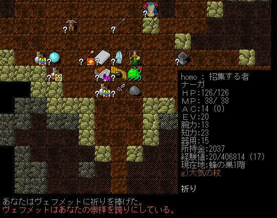 Dungeon Crawlのプレイ日記を始めます。ナーガ召換術師をプレイ中です。エルフの大広間を攻略しました。アイテムをベースキャンプへ移動させてメインダンジョンの探索を開始します。
