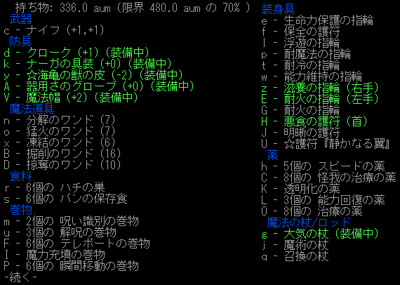 ベースキャンプにアイテムを移動させました。これよりメインダンジョン探索の準備をします。間違えて選択的記憶除去を忘れてしまったので呪文の入れ替えができない。ワンドを多めに持っていきます。