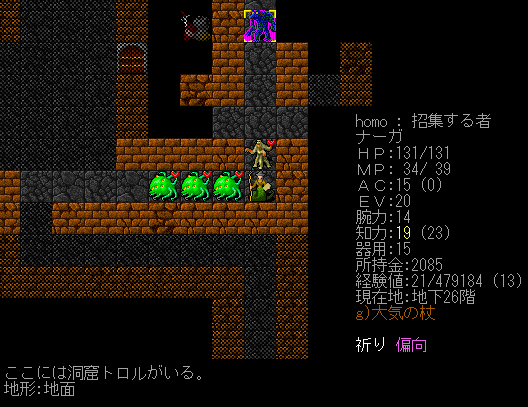 地下26には洞窟トロルの集団がいました。肉が食べられるようだから助かります。火の耐性もないしね。