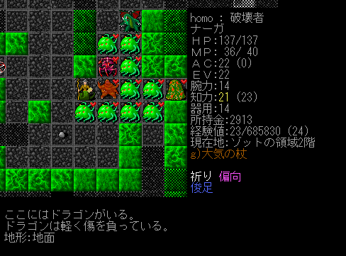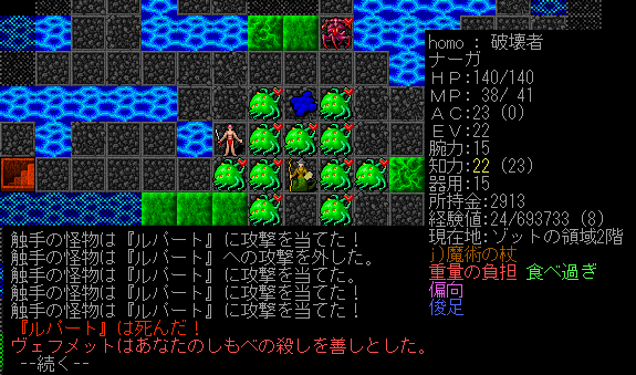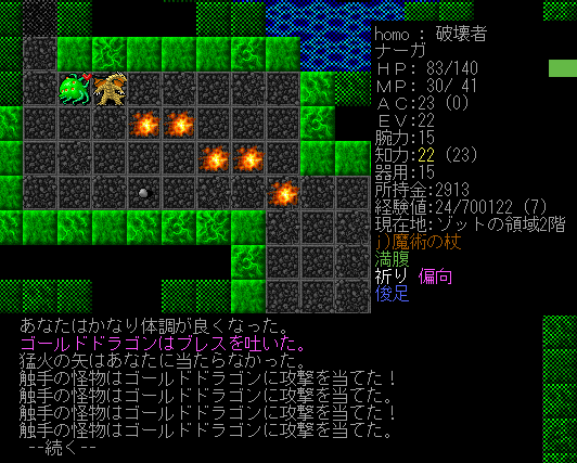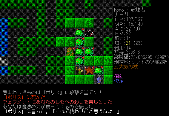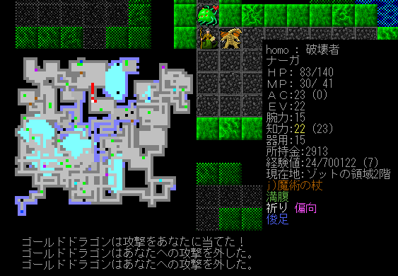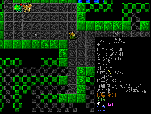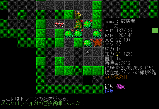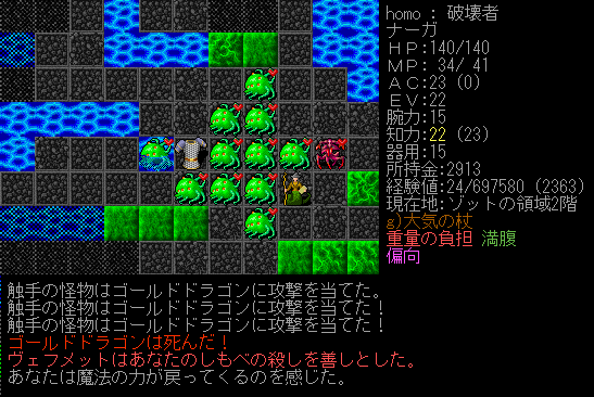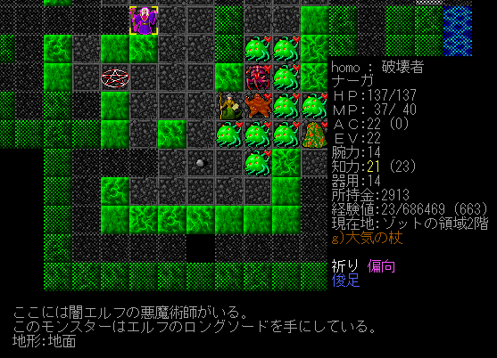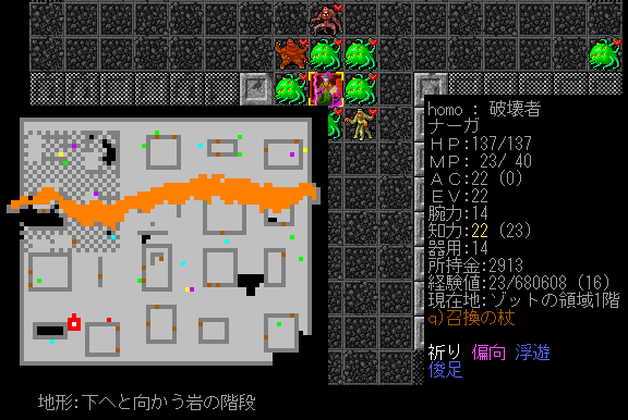 Dungeon Crawlのプレイ日記を始めます。ナーガ召換術師をプレイ中です。ゾットの領域を探索するのがしんどい。ユンケルを飲みながらMr.BigのAddicted To That Rushを聴いて(iTunesで買った)無理やりテンションを上げています。それでもキツい。