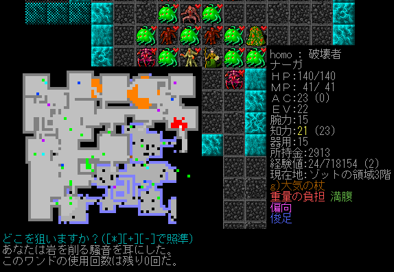通路を掘削のワンドでぶっ壊していたら使用回数が0になる。もう魔力充填の巻物が無いっす。もっと持ってくれば良かったなあ(泣)。