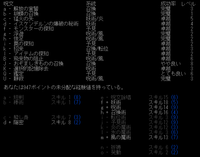 現在の呪文とスキル