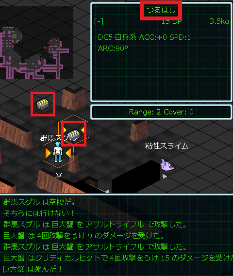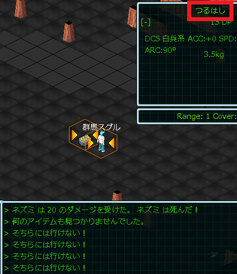 地下3階に特別なアイテムは落ちていない。ゆえに退屈な探索になると思っていたら「つるはし」が落ちているのに気づいた。つるはしは近接戦闘用の武器だ。KiRinメガマートで見たことがある。