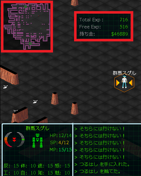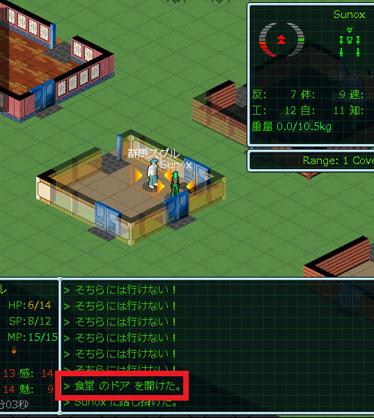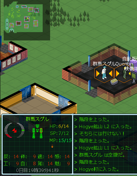 食事をして腹がふくれたら能力値が正常になりました。空腹により能力値の低下は死につながる。だけどこのゲームって現在の空腹度を知る方法が無いよね?