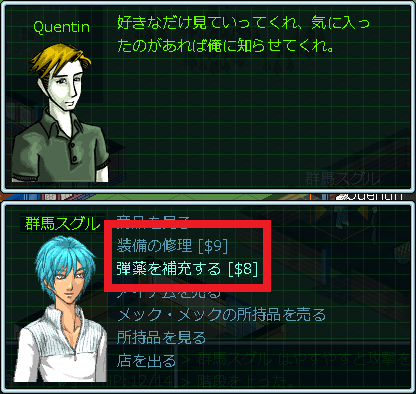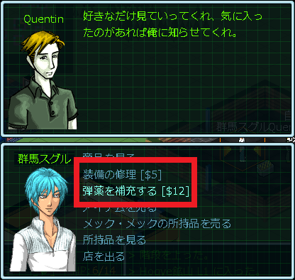 地下4階での激戦を終えてKiRinメガマートに帰還しました。能力値が軒並み激減しているのは空腹のせいです。前回は自動販売機の弁当を食べたけど、今回は別の店で食事をします。