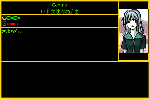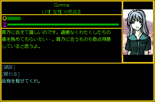 Conmaの正体は小売店主だった。wikiを見ても何を購入できる店なのかわからない。メックの武器やパーツを買える店だったら嬉しいなあ。