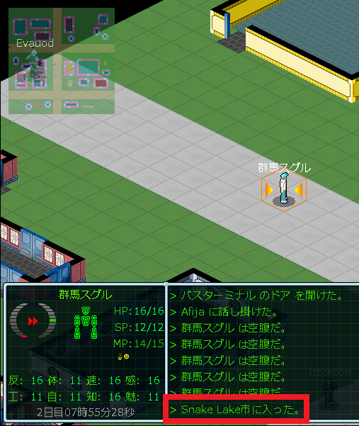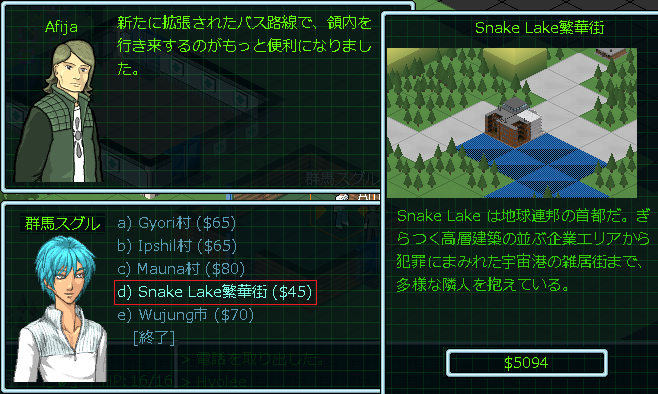 これでSnake Lake繁華街の施設を全て探索したことになる。この後はバスに乗ってSnake Lake企業地区に行く予定だったが、やる気が無くなった。やる気のない理由はもちろんメック屋で買物をする資金が無くなったからです。