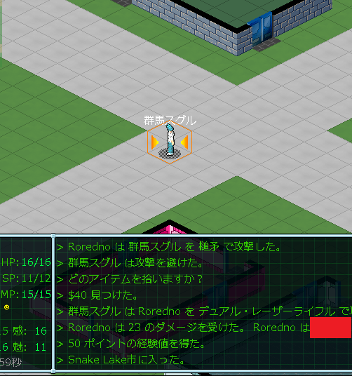GearHead1のプレイ日記を始めます。前回はSnake Lakeモールで買物をしました。重火器の「デュアル・レーザーライフル」を買えたのはラッキーだったよ。今回の投稿はSnake Lake企業地区に移動して施設を探索したりNPCと会話をします。まだSnakeLake繁華街で済ませたい用事があるから企業地区へ移動するのは投稿の後半です。