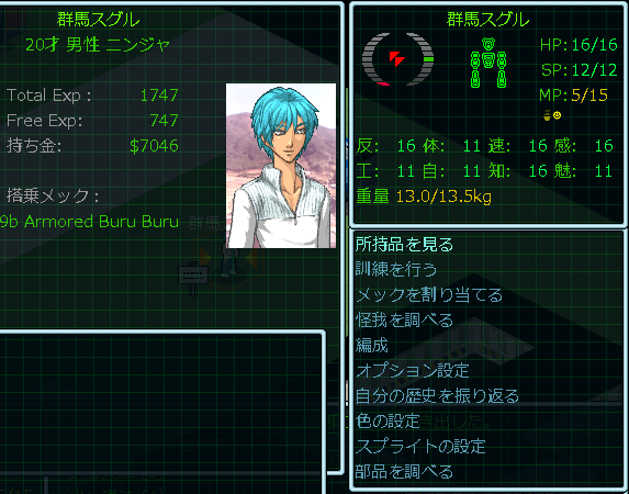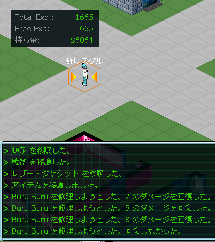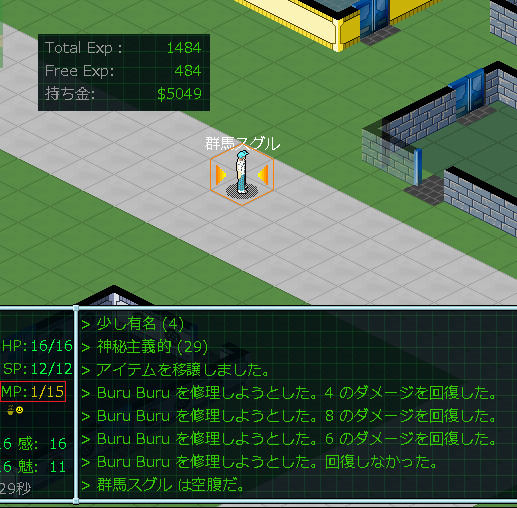 MPが貯まってきたのでメック修理スキルを使用します。BuruBuruの破損を修理して56の経験値を稼ぎました。そろそろメックの修理だけで200くらいは経験値を取得したんじゃないの。