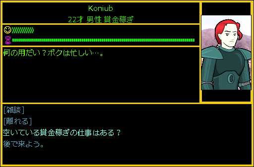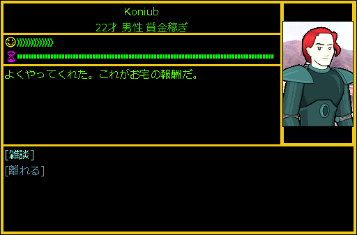 Koniubにストリートパンクの撃破を報告したところ、事務的で素っ気ない返事をされた。上のような短い返事だけの画像をブログに貼る意味は無いだろう。次回からは達成したことのある汎用イベントの画像を省略します。