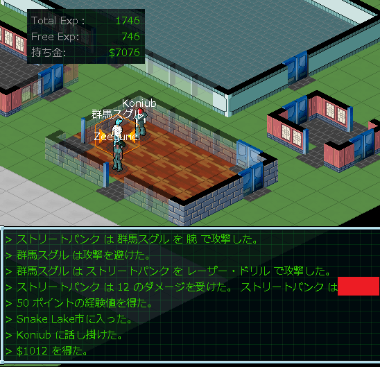 ストリートパンクと和解をしてSnake Lake繁華街に戻ってきました。あとは賞金稼ぎのKoniubに報告すればお金を貰えるだろう。ちなみにストリートパンクはドロップアイテムを落とさなかった。