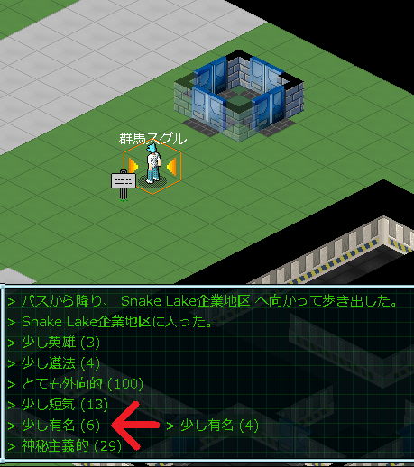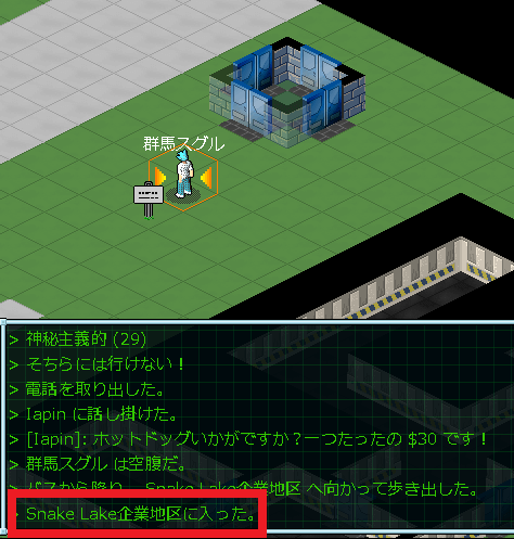 現在地の様子は上の画像。Snake Lake企業地区は巨大な建造物が多い。おそらく、そこらじゅうに大企業のビルがあるのだろう。俺も有名度を上げていけば、いつの日か企業地区にある会社に就職できるのです。今回の投稿はここで終わりにします。