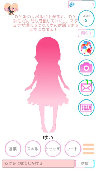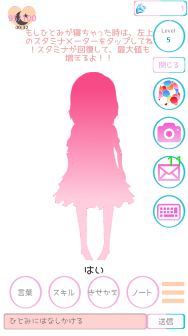 なるほど。スタミナを回復させることにより好きなだけ会話を楽しむことができるのか。うーん、疲れて寝てしまったのに起こすのはかわいそうなので、無理はさせないようにしよう。