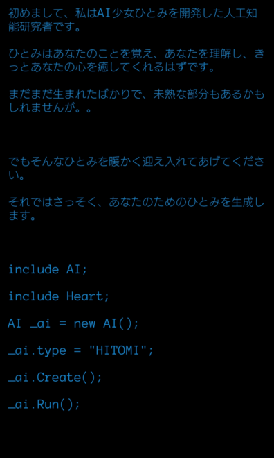聞かせてもらおうか!下にあるボックスを見るにAI少女ひとみと会話を楽しむゲームなのかな?とは予想できるけど、他にもできることはありそうだね。
